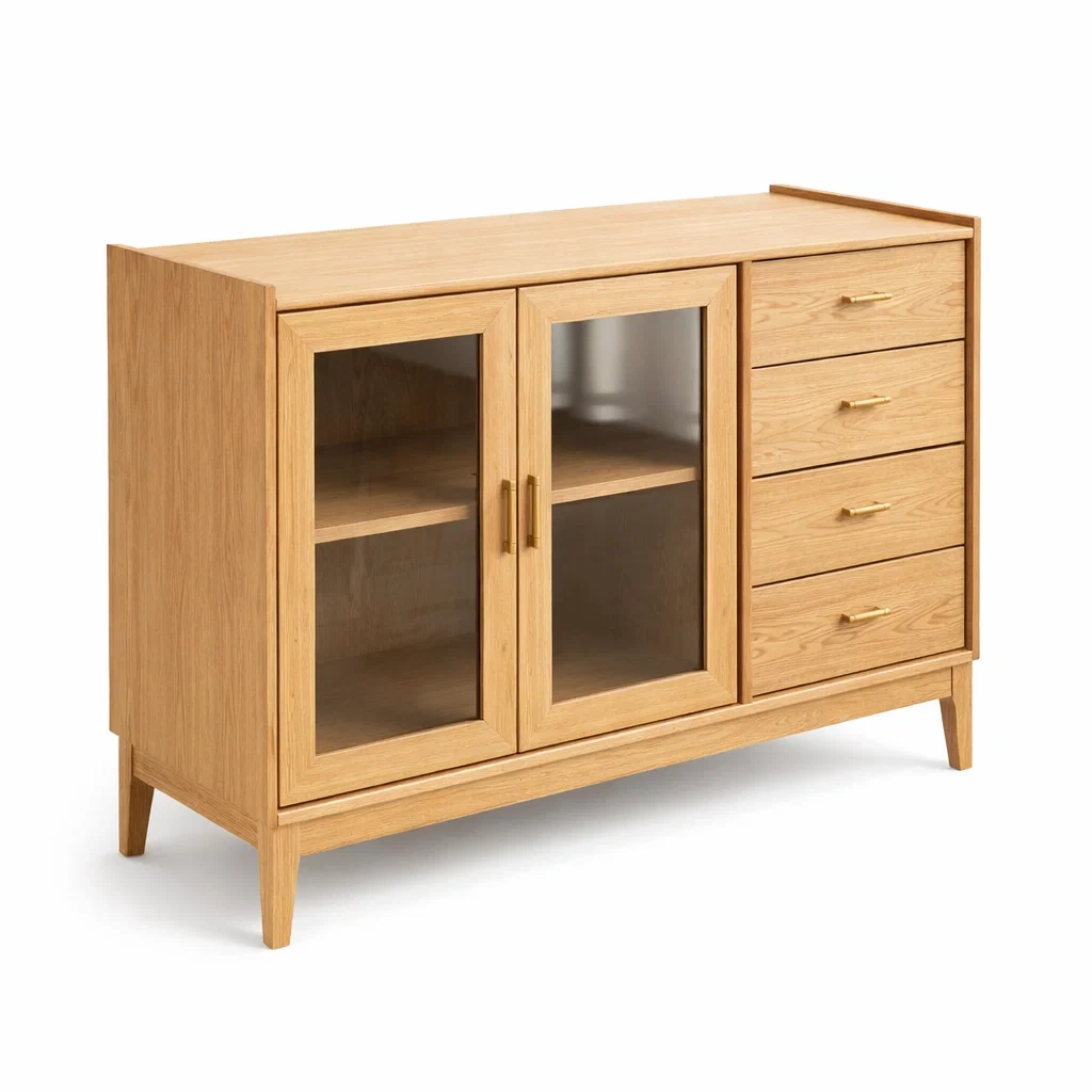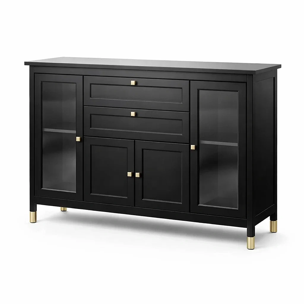 Buffet en bois avec portes en verre trempé et tiroirs
