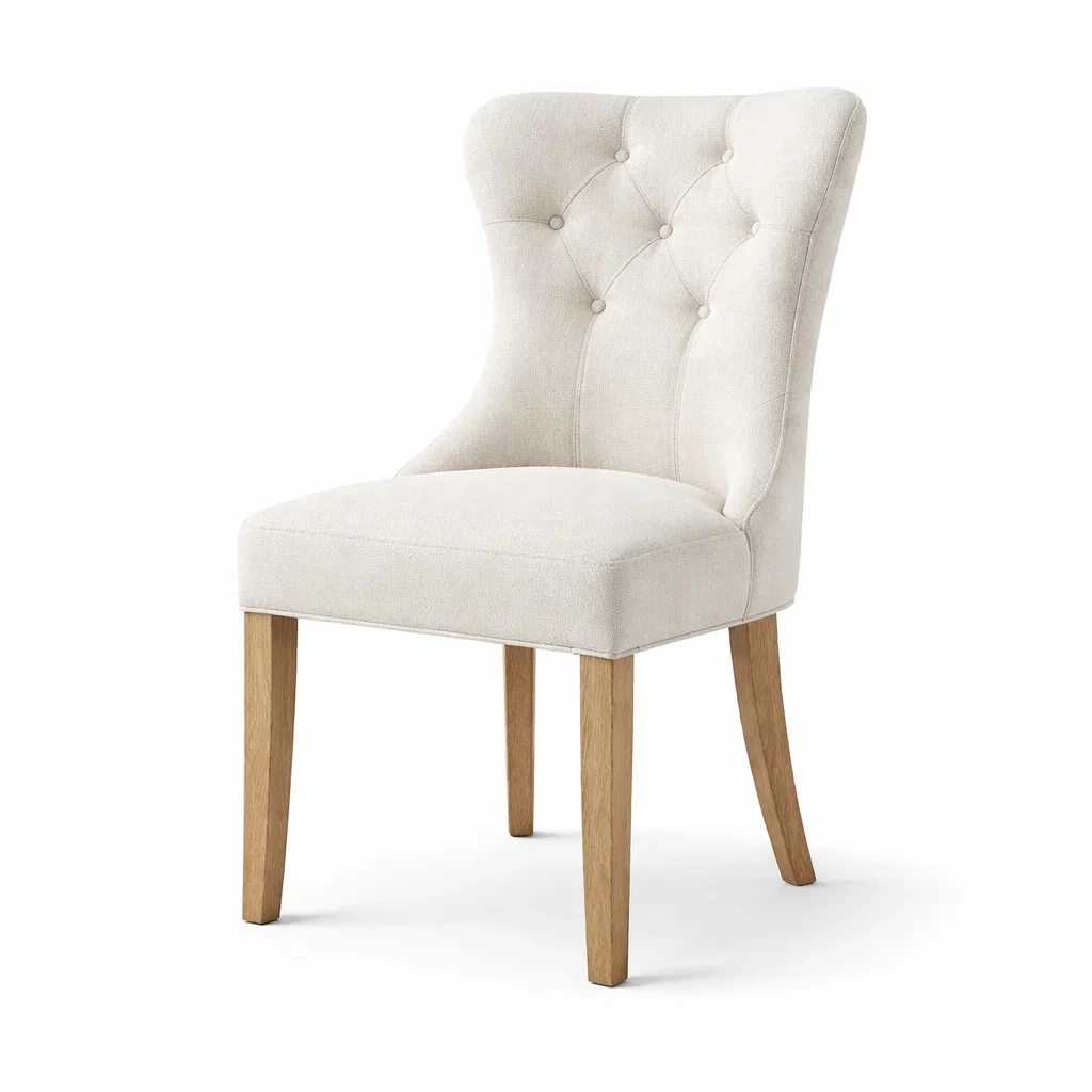 Chaise de salle à manger en tissu polyester beige avec pieds en bois